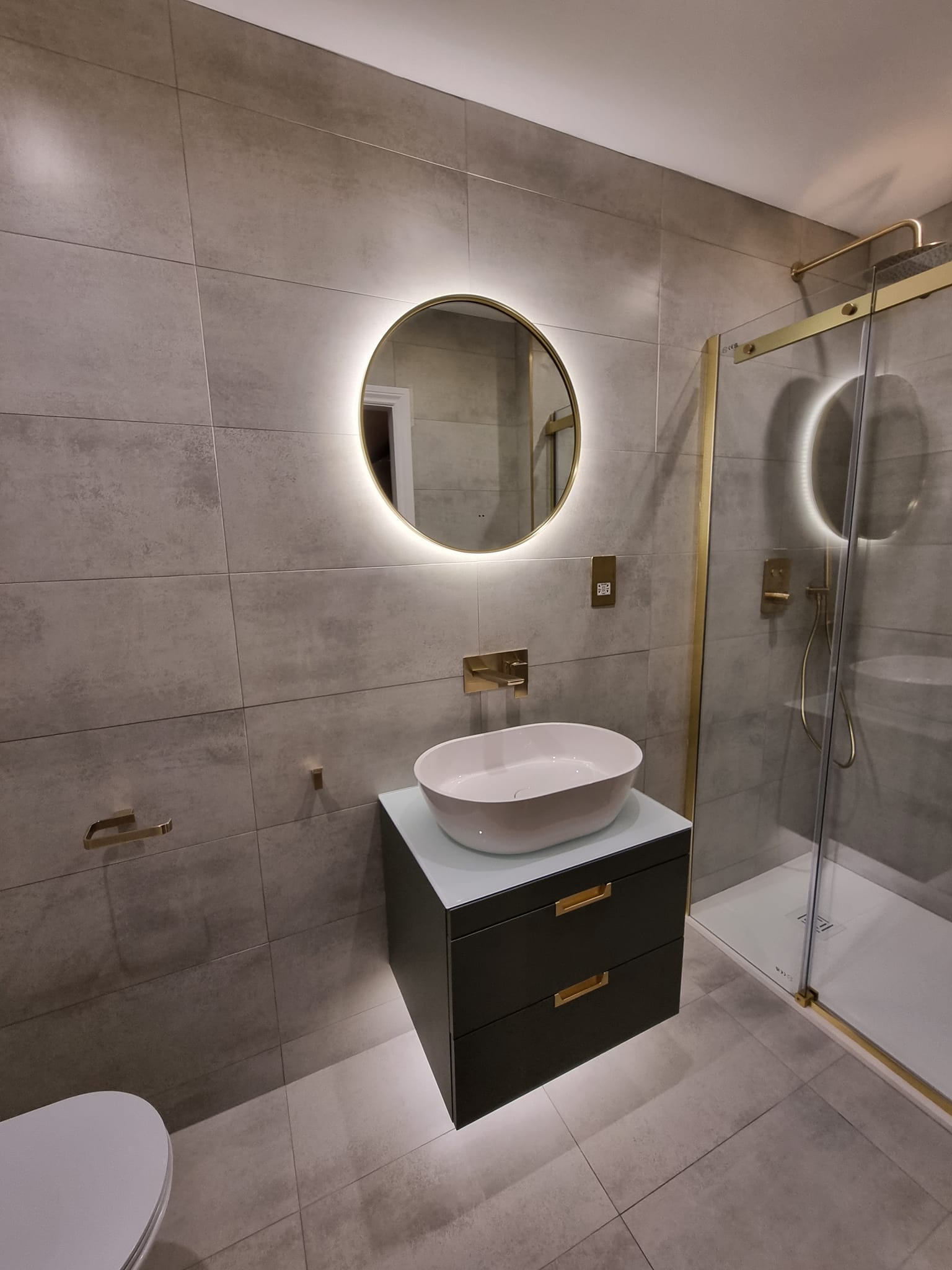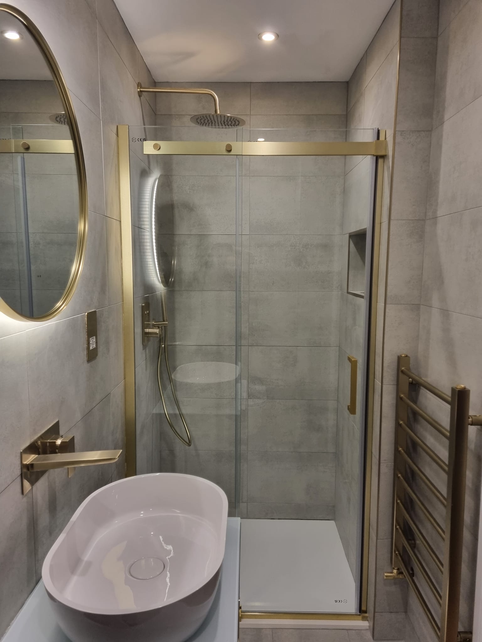 A beautiful transformation on this bathroom. We are very happy with the finished results.